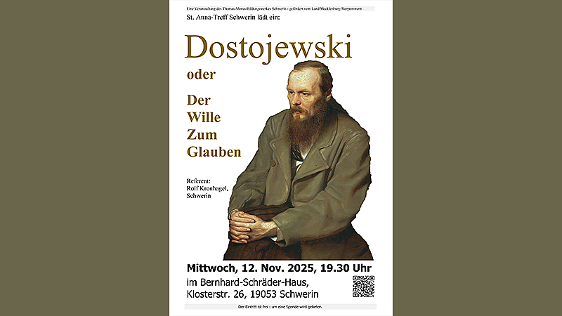 Dies spiegelt sich in seinem Werk, wo er existentielle Fragen mit einer quälenden Intensität behandelt. Der Vortrag richtet den Fokus auf das Ringen Dostojewskis mit den Phänomenen des Atheismus und Nihilismus. Seine These: „Wenn es keinen Gott gibt, ist alles erlaubt“ hat er wie kein anderer intensiv durchdekliniert, bis in die tiefsten Tiefen durchdacht und deren Konsequenzen psychologisch ausgeleuchtet. Seine Literatur ist seine Auseinandersetzung mit der Frage, ob Gott existiert, ob mit dem Tod alles vorbei sei und welche Folgen dies für das Leben hat. Sein Ringen verkörpern die von ihm geschaffenen Charaktere in den Romanen aus unterschiedlichen Perspektiven.